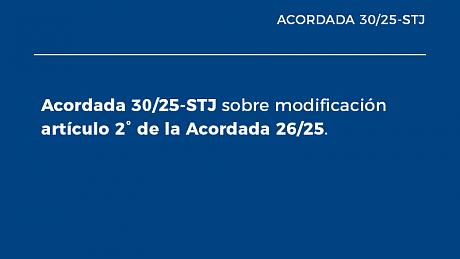 Acordada 30/25-STJ - Modificación artículo 2° de la Acordada 26/25