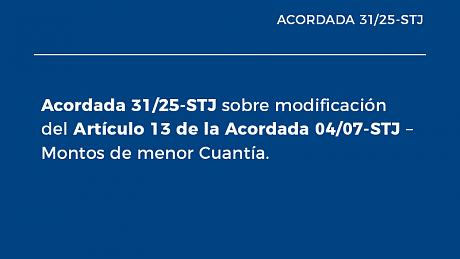 Acordada 31/25-STJ - Modifica Artículo 13 de la Acordada 04/07-STJ