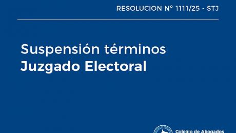 Resolución 1111/25-Pcia.STJ - Suspensión términos Juzgado Electoral