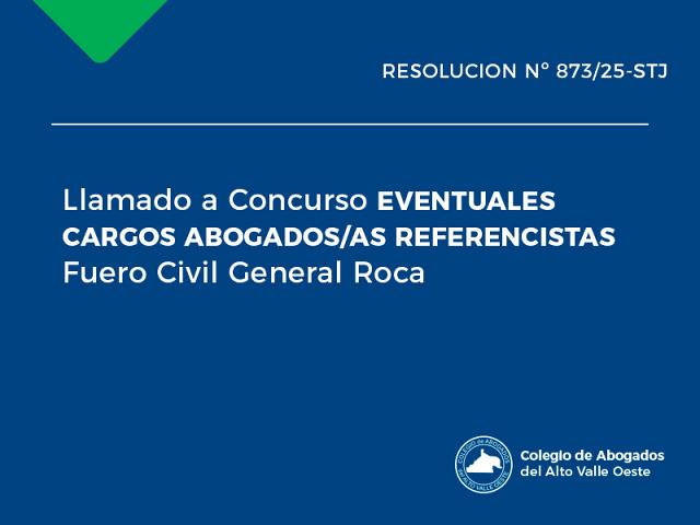 Llamado a Concurso para Eventuales Referencista del Fuero Civil con asiento de funciones en la ciudad de General Roca. ..