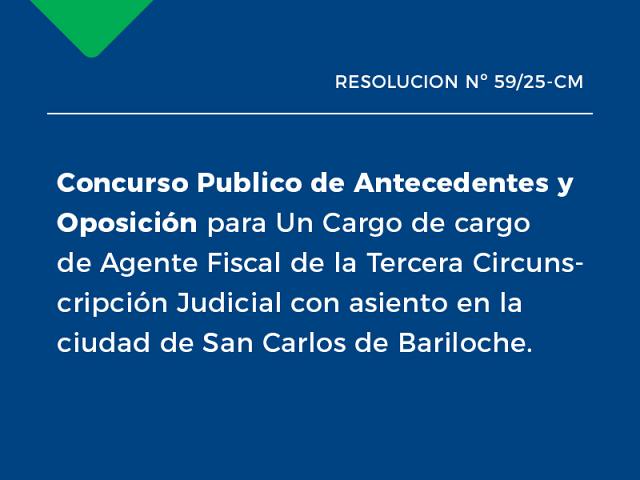 Concurso Publico de Antecedentes y Oposición para Un Cargo de cargo de Agente Fiscal de la Tercera Circunscripción Judicial con asiento en la ciudad de San Carlos de Bariloche..