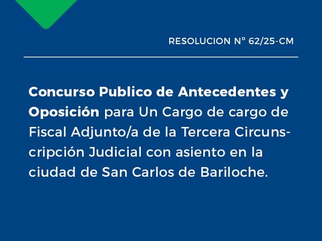 Concurso Publico de Antecedentes y Oposición para Un Cargo de cargo de Fiscal Adjunto/a de la Tercera Circunscripción Judicial con asiento en la ciudad de San Carlos de Bariloche. ..