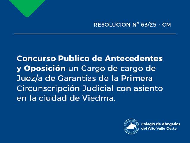 Concurso Publico de Antecedentes y Oposición un Cargo de cargo de Juez/a de Garantías de la Primera Circunscripción Judicial con asiento en la ciudad de Viedma. ..