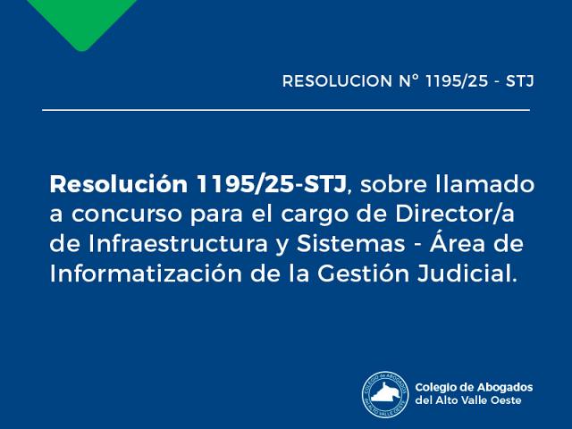Resolución 1195/25-Pcia-STJ, sobre llamado a concurso para el cargo de Director/a de Infraestructura y Sistemas - Area de Informatización de la Gestión Judicial. ..