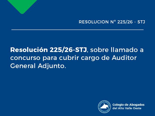 Resolución 225/26-Pcia.STJ sobre llamado a concurso para cubrir cargo de Auditor General Adjunto. ..