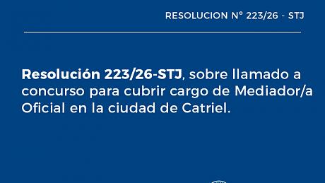 El concurso para el cargo de Río Colorado ya se había tramitado en dos oportunidades pero quedó desierto. En Catriel sucedió lo mismo. En esta última ciudad se advirtió la necesidad de contar con un profesional que afronte las actuaciones que se tramitan en la localidad. Las estadísticas reflejan un número elevado de mediaciones prejudiciales en esa ciudad. A esa circunstancia se le suma que no existe mediador que pueda intervenir en los procedimientos, por lo que se realizan con la colaboración de mediadores de otras localidades de la Cuarta Circunscripción.