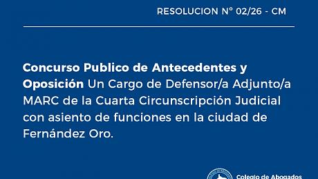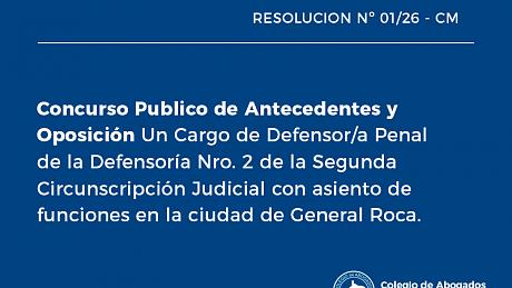 Llamado a concurso de oposición y antecedentes para cubrir un (1) cargo de Defensor Público del Ministerio Público de la Defensa del Poder Judicial (con asiento en la ciudad de Tolhuin).