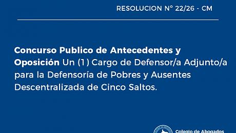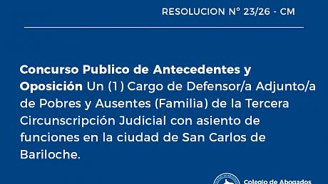 Un Cargo de Defensor/a Adjunto/a de Pobres y Ausentes (Familia) de la Segunda Circunscripción Judicial con asiento de funciones en General Roca.