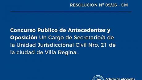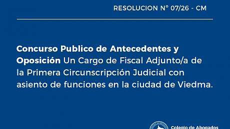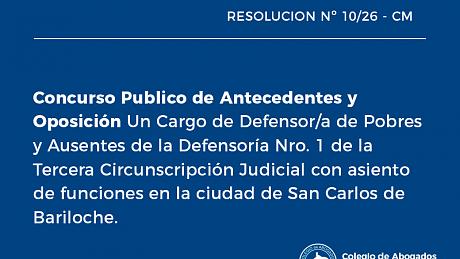 Concurso Publico de Antecedentes y Oposición Un Cargo de Defensor/a de Pobres y Ausentes de la Tercera Circunscripción Judicial con asiento en la ciudad de San Carlos de Bariloche.
